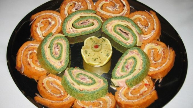 Testo izmesite sa kurkumom. Između dva pek papira razvaljajte oklagijom, sklonite gornji papir pa premažite iseckanim spanaćem u koji ste umešali majonez i malko posolili. Umotajte uz pomoć papira i ostavite do sutradan.