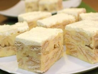SASTOJCI 300 g plazma keksa (ili petit beure keksa) 3 pudinga od vanilije 9 žlica šećera 1l mlijeka 200 g maslaca 4 žlice kiselog vrhnja […]