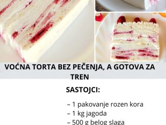 Sastojci – 1 pakovanje kora za rozen tortu – 1 kg jagoda – 500 g belog slaga – 3 dl hladne kisele vode – 2 […]