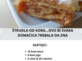 Sastojci 15 kom kora 4 kom jaja 2 case (2 dl.) secera 2 case jogurta 2 case griza pola case ulja 1 prasak za pecivo […]