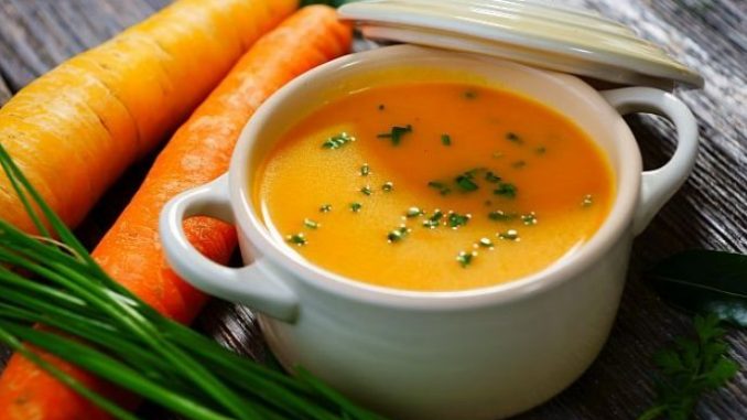 Na 2 kašike kokosovog ulja prodinstajte sitno seckani luk i 2 čena belog luka. Kada luk poprimi zlatnu boju, dodajte 1 kg iseckane šargarepe i pola litre čorbe od povrća. Promiješajte i pustite da juha provrije. Kuvajte ga na srednjoj temperaturi oko 20 minuta.