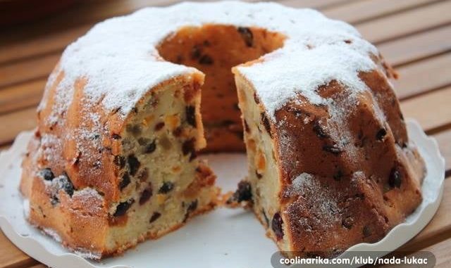 Tijesto izlijte u kalup i izravnajte. Pecite 60-ak minuta na 180°C. Pečeni kuglof ostavite 10 minuta u kalupu, zatim ga istresite na rešetku.