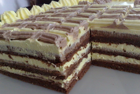 500 gr.margarina umutiti sa 250 gr.secera, pa u to dodati 16 zumanaca, 200 gr.mlevene plazme i 500 gr.otopljene prohladjene cokolade.