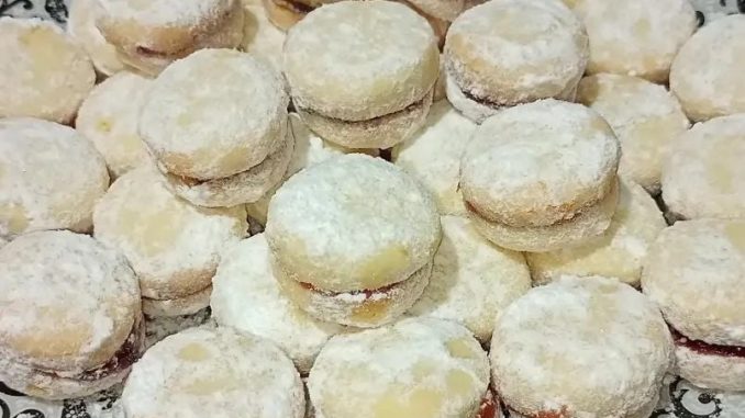 Umutite margarin s tri kašike šećera. Dodajte puding, pa postepeno brašno i vanilin-šećer. Tijesto rastanjite na debljinu oko pola centimetra i čašicom ili modlom vadite krugove. Redajte ih u pleh i pecite na 200 stepeni, samo dok ostanu blijedožute. Kada se ispeku, po dvije spajajte marmeladom i uvaljajte u šećer u prahu.