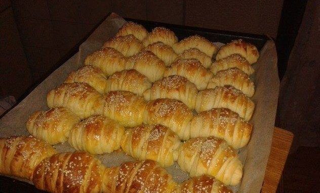 Tako složeno razviti u veliki krug, debljine 3 – 5 milimetara i iseći 32 trougla. Kroasani se mogu puniti čime god želite ili ostaviti prazni.