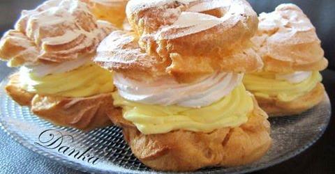 Ohlađene krofne rasjeći na pola stavljati kremu pa slatku pavlaku umućenu u šlag i poklopiti gornjim dijelom krofne.