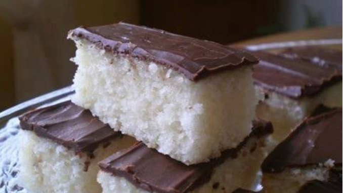 Ostavite da se smese ohlade(ne da se stegnu), razvucite na pek papiru beli deo uz pomoć oklagije, na drugom pek papiru razvucite tamni deo i potom preklopite testa jedno preko drugog. Pređite oklagijom da se delovi spoje. Secite trake širine oko 1 cm. urolajte i uvrnite da se naprave šare (možete pogledati u videu). Secite manje komade i uvaljajte u kokos. Ostavite kolače u frižideru da se stegnu. Prijatno!